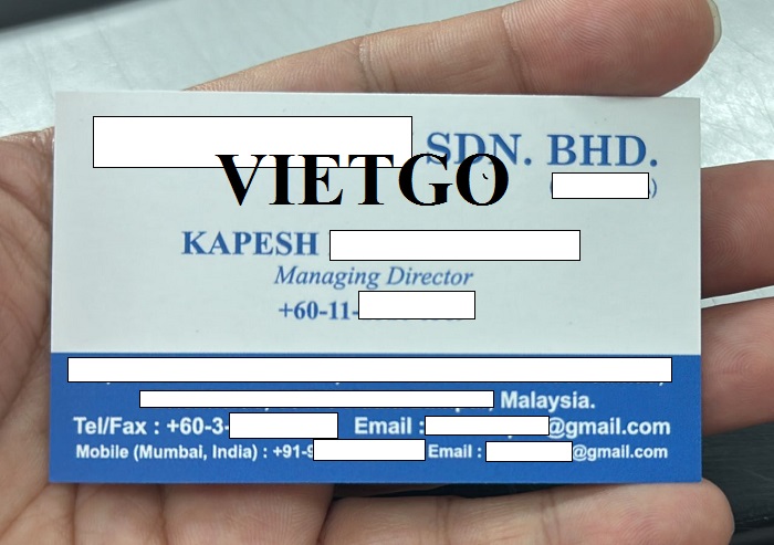 Ông Kapesh, đại diện đến từ công ty ██████████. Bhd., đã liên hệ với VIETGO để bày tỏ mong muốn tìm kiếm nhà cung cấp sản phẩm hạt tiêu.