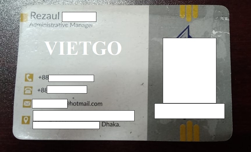 Ông Rezaul mong muốn sớm nhận được báo giá từ các nhà cung cấp của VIETGO. Bởi vậy, Quý nhà cung cấp nào mong muốn hợp tác cùng vị khách hàng xin vui lòng liên hệ và báo giá cho ông trong thời gian sớm nhất theo thông tin dưới đây: