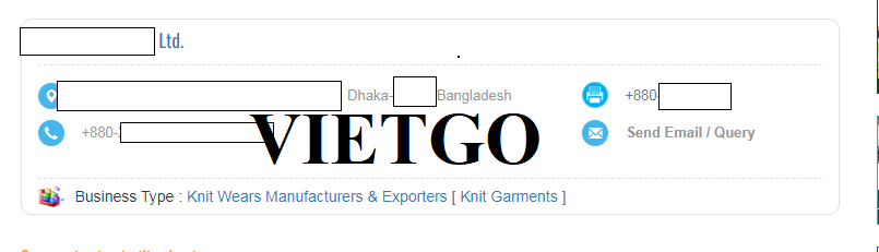 Về đơn hàng lần này, ông Moazzem mong muốn sớm nhận được báo giá cho đơn hàng để kịp thời hoàn thành dự án kinh doanh của công ty. Quý nhà cung cấp nào có thể đáp ứng được đơn hàng xuất khẩu sợi này vui lòng liên hệ và báo giá cho vị khách hàng trong thời gian sớm nhất theo thông tin dưới đây: