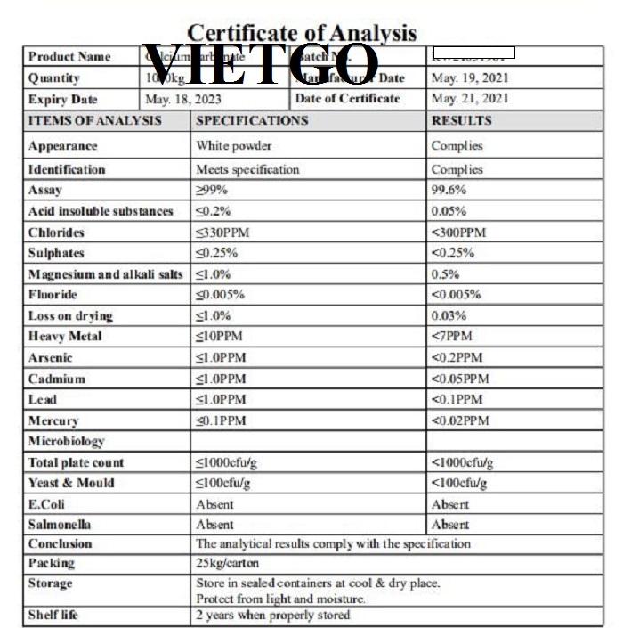 Ông Anil cho biết: “██████████ là nhà sản xuất và phân phối nguyên liệu thô có chất lượng tốt như bột dolomite, bột đá marble, bột đá vôi,v.v. Thông qua VIETGO, chúng tôi muốn tìm nhà cung cấp có thể xuất khẩu 26 tấn bột đá vôi sử dụng trong ngành thực phẩm. Hy vọng, tôi sẽ nhanh chóng nhận được báo giá từ các nhà cung cấp của VIETGO để chúng ta có thể nhanh chóng tiến tới hợp tác”.