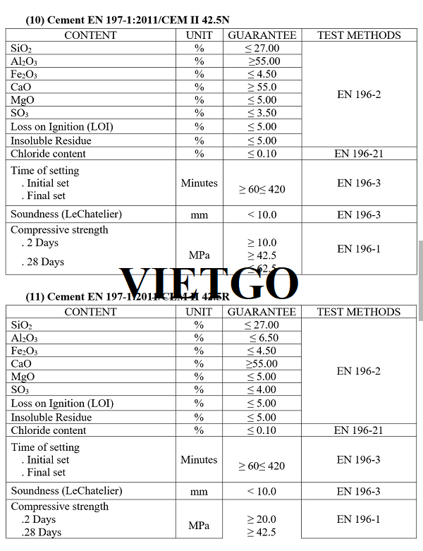 Yêu cầu: Xi măng Portland 42.5N có chất lượng tốt