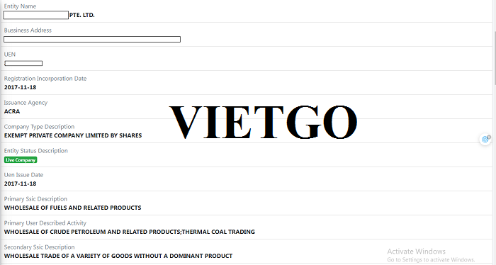 Địa chỉ trụ sở công ty: No. ██████████, Singapore
