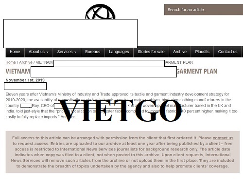 Vào năm 2019 và 2020, vị khách hàng cũng đã từng trả lời phỏng vấn cho các tờ báo và trang mạng như ████████████████████(Vương quốc Anh) và ██████████ (Bangladesh) nhận định về tình hình xuất khẩu ngành dệt may tại Việt Nam.
