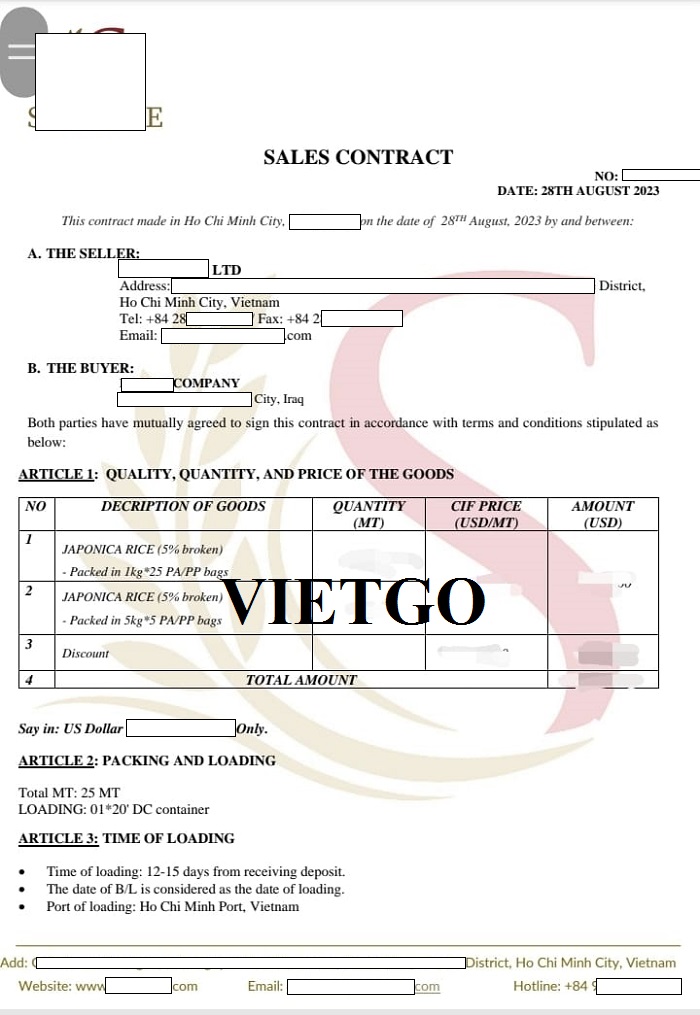 Hình ảnh hợp đồng ngoại thương do vị khách hàng cung cấp