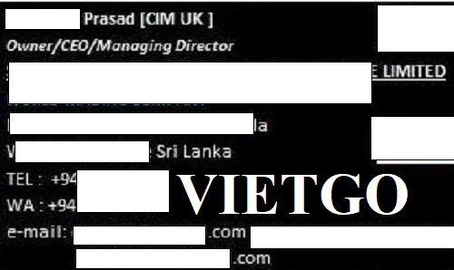 “Với sứ mệnh mang đến cho khách hàng những trải nghiệm tốt nhất tại Sri Lanka, công ty luôn cung cấp các sản phẩm và dịch vụ chất lượng cao thông qua đội ngũ năng động và quan hệ đối tác có giá trị, thúc đẩy tăng trưởng và đảm bảo lợi nhuận tốt cho tất cả các bên liên quan. Hiện tại, chúng tôi đang có nhu cầu nhập khẩu hàng tháng tôm thẻ chân trắng sang thị trường Trung Quốc cho một đối tác lâu năm của mình. Liên hệ với VIETGO lần này, chúng tôi tin rằng thông qua sự giúp đỡ của VIETGO, chúng tôi sẽ có cơ hội được hợp tác với các nhà cung cấp tại đây”.