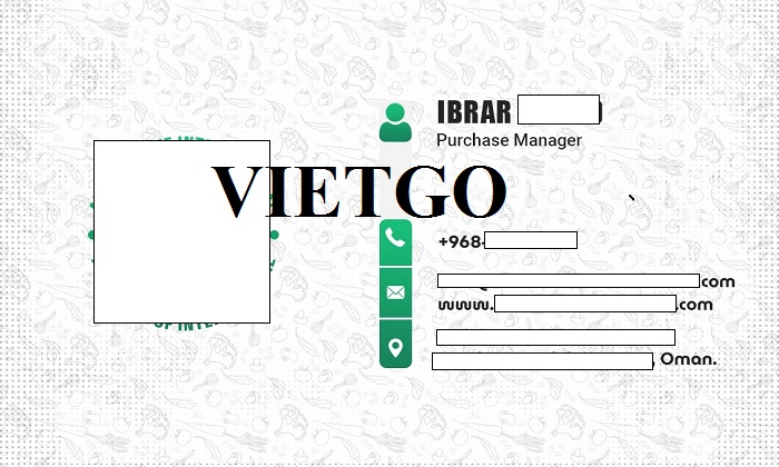 Ông Ibrar ██████████, vị khách hàng tiềm năng của VIETGO lần này, đồng thời là Giám đốc mua hàng của công ty ██████████ International với văn phòng chính được đặt tại Oman. ██████████ International kinh doanh đa dạng các loại sản phẩm tươi sống và đông lạnh như: trái cây, rau và thịt. Công ty luôn cam kết tìm nguồn cung ứng bền vững và có đạo đức đồng thời thúc đẩy các phương pháp sản xuất và trồng trọt có trách nhiệm. Bằng cách ưu tiên tính bền vững, ██████████ International mong muốn giảm thiểu tác động đến môi trường và đóng góp cho một hành tinh khỏe mạnh hơn. Trong những năm qua, công ty đã xây dựng một mạng lưới toàn cầu mạnh mẽ gồm các nhà cung cấp và đối tác đáng tin cậy, cho phép tìm nguồn sản phẩm tốt nhất từ nhiều khu vực khác nhau trên toàn thế giới.
