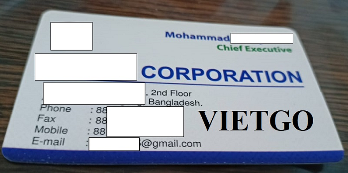Ông Mohammad, một đại diện mua hàng đến từ Bangladesh, hiện ông đang là Giám đốc công ty ██████████ Corporation có trụ sở chính tại Bangladesh. Vừa qua, vị khách hàng đã liên hệ với VIETGO nhằm tìm kiếm nhà cung cấp cho đơn hàng nhập khẩu hàng tháng thép cuộn của mình. Vị khách hàng bày tỏ tin tưởng và đang rất nóng lòng nhận báo giá để có thể thực hiện đơn hàng trong thời gian sớm nhất.