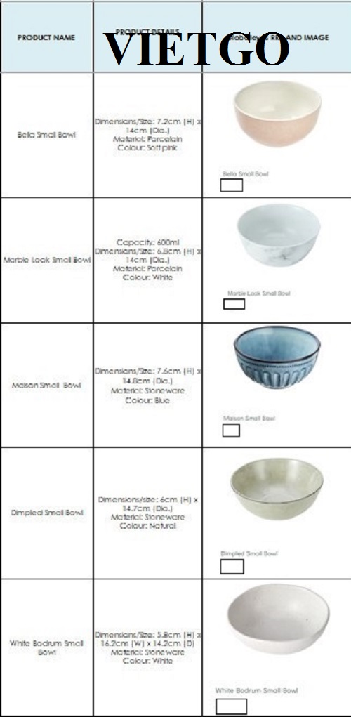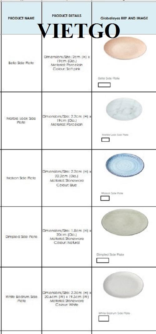 Vừa qua, VIETGO đã nhận được một lời đề nghị báo giá từ ông Lucas – nhân viên văn phòng đại diện của công ty ██████████ International Trading Co., Ltd tại Việt Nam - về đơn hàng xuất khẩu bát đĩa sành sứ porcelain sang thị trường Australia.
