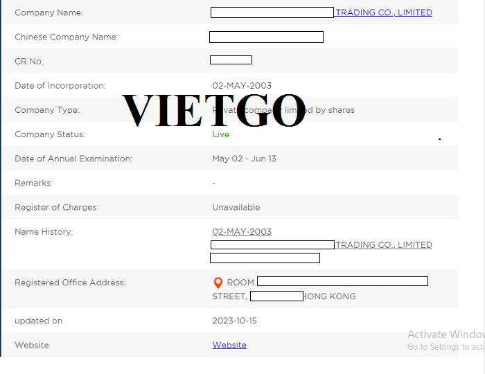 Địa chỉ trụ sở chính: Room ██████████ Đường ██████████, Hong Kong