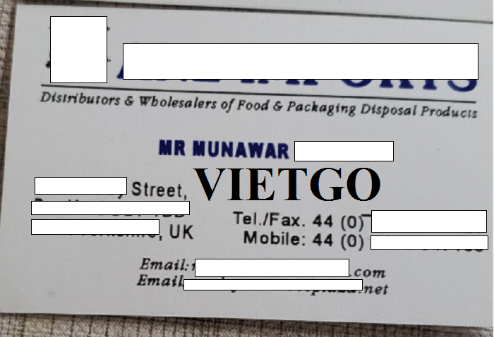 Ông Munawar ██████████ – vị khách hàng tiềm năng của VIETGO lần này, đồng thời là đại diện mua hàng đến từ công ty ██████████ có trụ sở chính đặt tại Anh. ██████████ là một trong những nhà phân phối và bán buôn thực phẩm và sản phẩm cần xử lý bao bì tại thị trường nội địa. Với hơn 30 năm kinh nghiệm trong ngành, ██████████ hiện đã sở hữu số lượng khách hàng trung thành nhất định trên cả thị trường trong nước và quốc tế. Phương châm hoạt động của ██████████ là nhanh chóng, kịp thời và uy tín. Đó cũng chính là lý do khiến công ty ngày càng được khách hàng tin tưởng và lựa chọn. Bên cạnh đó, công ty luôn ưu tiên đặt trải nghiệm của khách hàng lên đầu, luôn cam kết đảm bảo quyền lợi cho mọi khách hàng.