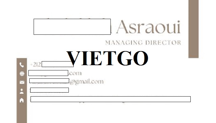 Vị khách hàng mong sớm nhận được báo giá và trao đổi trực tiếp với các nhà cung cấp. Vì vậy, Quý nhà cung cấp nào có thể đáp ứng được yêu cầu của ông Asraoui vui lòng liên hệ và báo giá cho ông qua địa chỉ thông tin liên lạc dưới đây: