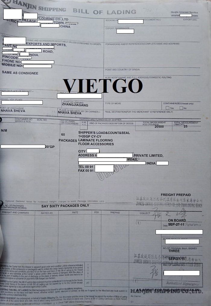 Dưới đây là hình ảnh bản vận đơn nhập khẩu phụ kiện sàn từ Trung Quốc vào ngày 27/11/2022 mà công ty vị khách hàng đã nhập khẩu thành công: