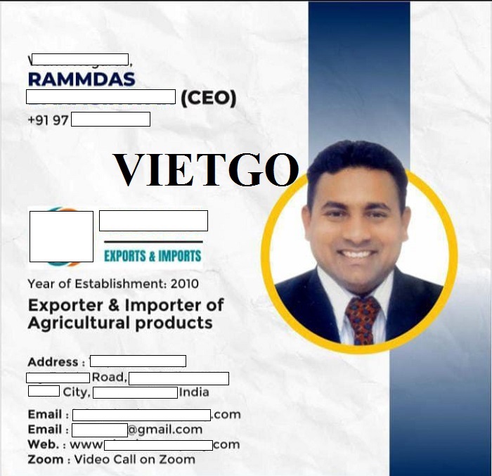 Nhờ cuộc nói chuyện, VIETGO nhận thấy ông Rammdas là một vị khách hàng tiềm năng, có thái độ nghiêm túc và thiện chí hợp tác. Vì vậy, Quý nhà cung cấp nào có thể đáp ứng cho đơn hàng này, vui lòng liên hệ theo thông tin được cung cấp dưới đây.