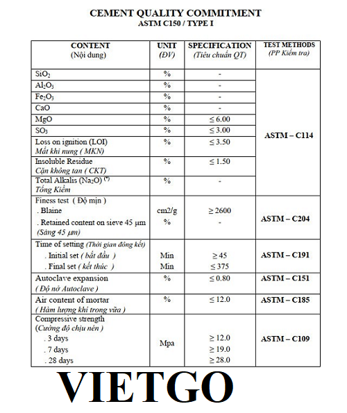 Ông Francis cho biết thêm: “Đây là lần đầu tiên chúng tôi tham gia vào lĩnh vực kinh doanh thương mại quốc tế. Do các nhà sản xuất xi măng nội địa của Trung Quốc có giá rất cao nên chúng tôi muốn thử các nhà máy ở Việt Nam. Tôi nghĩ rằng các nhà cung cấp tại Việt Nam sẽ có giá cả cạnh tranh hơn với các nhà máy Trung Quốc. Với đơn hàng lần này, tôi mong muốn VIETGO tiếp tục giúp tôi tìm nhà cung cấp cho đơn hàng xuất khẩu 50,000 tấn xi măng ASTM C150 loại I cho khách hàng của tôi tại Venezuela. Vì thời gian cũng khá gấp nên tôi hy vọng sẽ nhận được báo giá của các bạn trong thời gian sớm nhất để chúng ta có thể tiến hành giao dịch ngay”.