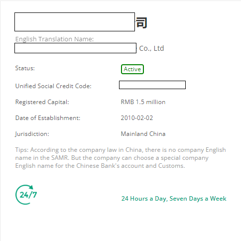 Tên công ty: ██████████ Co.,Ltd (██████████司)