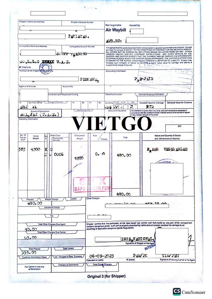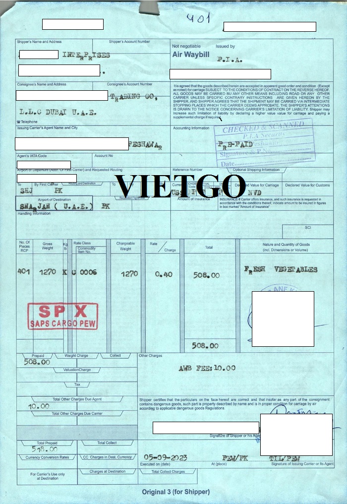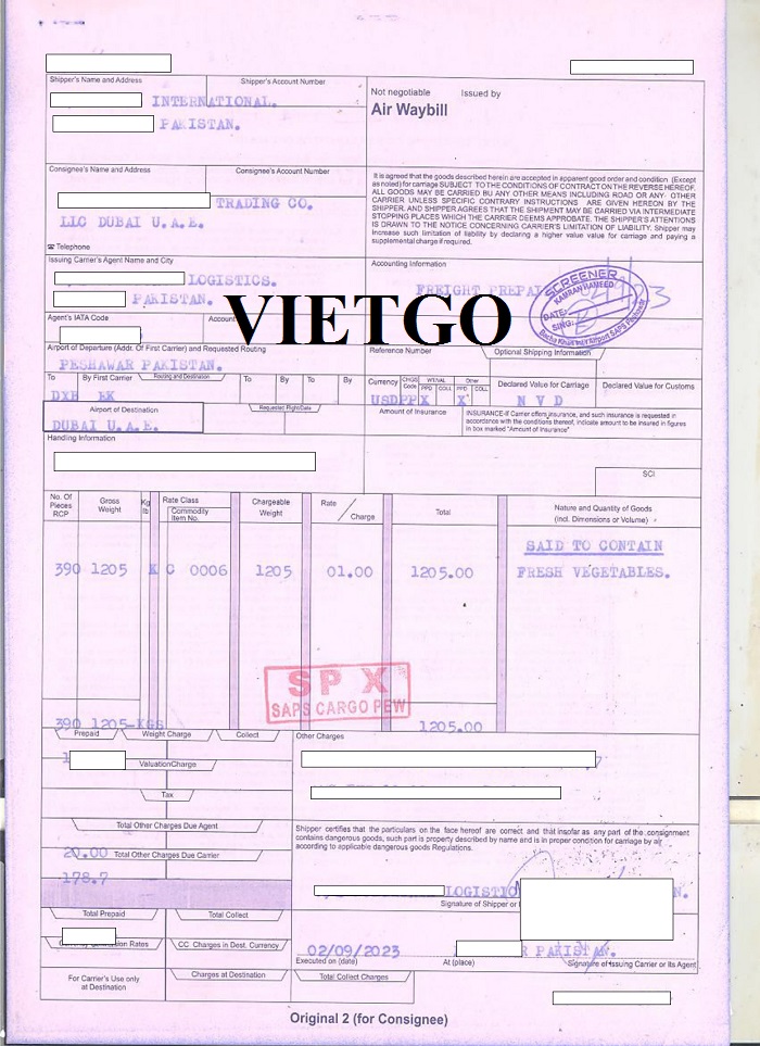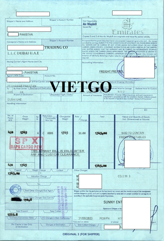 Dưới đây lần lượt là hình ảnh các bản vận đơn cho đơn hàng nhập khẩu rau củ tươi qua đường hàng không từ Pakistan đến UAE các ngày 31/8/2023, 1/9/2023, 2/9/2023, 5/9/2023, 6/9/2023 mà công ty vị khách hàng đã thực hiện thành công và một số sản phẩm công ty vị khách hàng hiện đang kinh doanh: