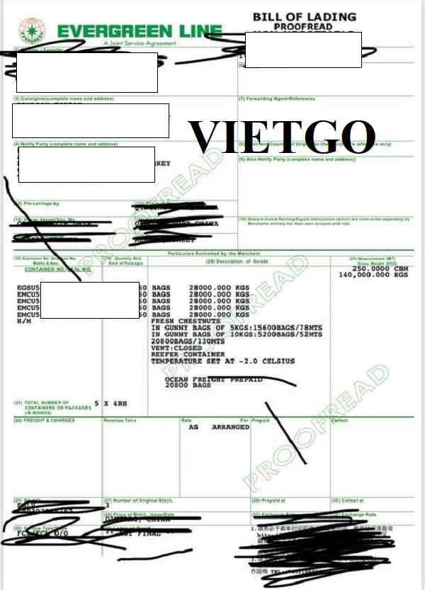 Qua quá trình trao đổi với vị khách hàng, ông cho biết ông luôn đặt chất lượng sản phẩm lên hàng đầu, đó là tiêu chí đầu tiên khi lựa chọn kinh doanh cũng như tìm kiếm nguồn cung cấp. Ông đã từng nhập khẩu nhiều loại hàng hóa từ nhiều quốc gia khác nhau về Thổ Nhĩ Kỳ. Hiện tại do nhu cầu tiêu dùng của khách hàng ở thị trường nội địa ngày càng tăng cao, do đó ông cần mở rộng rộng phạm vi tìm kiếm sang các khu vực lân cận và có lợi thế nông nghiệp. Dưới đây là hình ảnh bản vận đơn nhập khẩu sản phẩm thành công hạt dẻ từ Trung Quốc của ông:
