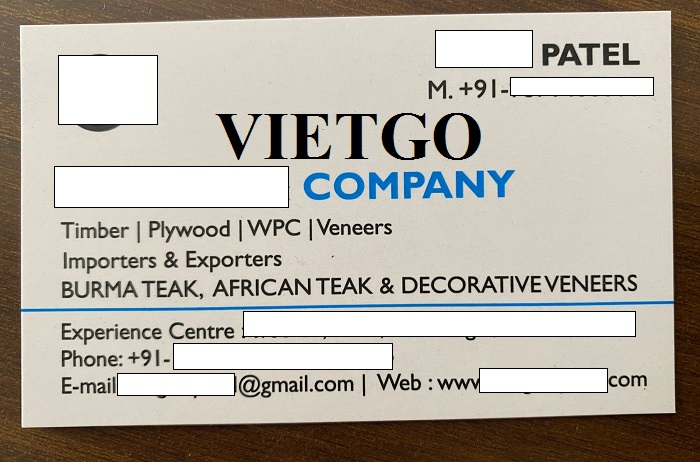 Vừa qua, vị khách hàng người Ấn Độ, ông Vasu – đại diện công ty ██████████ tại Ấn Độ, đã chủ động liên hệ với VIETGO nhằm mục đích nhập khẩu ván MDF để phục vụ cho hoạt động kinh doanh của công ty mình.