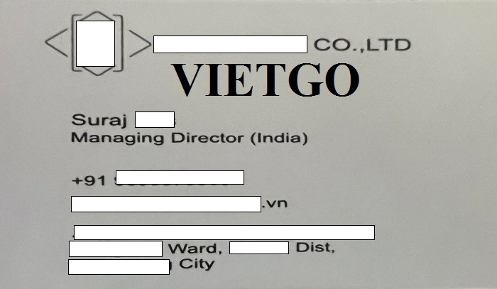 Vừa qua, ông Suraj████████████████████ – hiện đang là quản lý đối tác của công ty ██████████ đã liên hệ với VIETGO và bày tỏ mong muốn được nhập khẩu gỗ vụn tới thị trường Ấn Độ. Ông là người chịu trách nhiệm và quản lý công việc kinh doanh và hoạt động vận hành của công ty. Công ty của ông Suraj được biết đến kinh doanh các loại hạt đậu, hóa chất, khoáng sản…