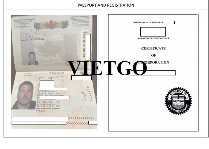 Hình ảnh đăng kí kinh doanh và passport của giám đốc công ty vị khách hàng