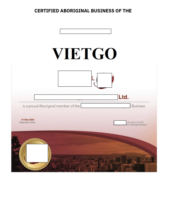 Hình ảnh Giấy chứng nhận thành viên thuộc Hội đồng Doanh nghiệp Thổ dân Canada (Canadian Council for Aboriginal Business - CCAB) của công ty vị khách hàng