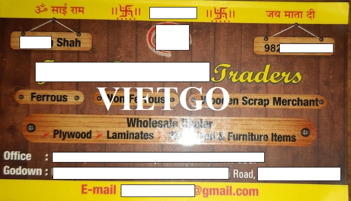 VIETGO xin gửi tới Quý nhà cung cấp thông tin về đơn hàng gỗ dán đến từ vị khách hàng tiềm năng, ông Shah.