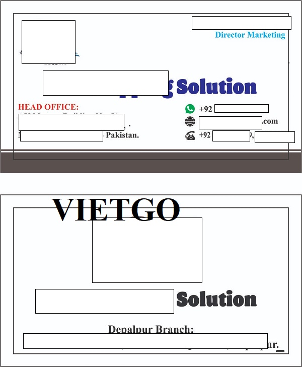 Ông Kashif – đại diện của công ty ██████████ vừa qua đã liên hệ với VIETGO, trao đổi về mong muốn tìm kiếm đại diện thương mại tại thị trường Việt Nam, nhằm mục đích phục vụ cho hoạt động kinh doanh của công ty ông.