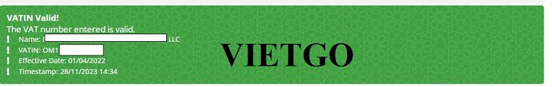 VIETGO xin gửi tới Quý vị thông tin đơn hàng và xin chúc Quý vị có được một thương vụ thành công!