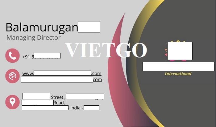 Ông Balamurugan – Giám đốc công ty ██████████ International vừa qua đã liên hệ và trao đổi với VIETGO về mong muốn tìm kiếm nhà cung cấp cho đơn hàng nhập khẩu chân hương của mình.
