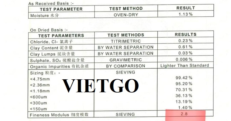 Đối với đơn hàng nhập khẩu cát lần này, chúng tôi mong muốn sẽ có cơ hội được hợp tác với những nhà cung cấp tiềm năng thông qua sự giúp đỡ của VIETGO. Chúng tôi tin rằng, đây sẽ là cơ hội để bắt đầu một mối quan hệ hợp tác lâu dài. Vì vậy, chúng tôi rất mong có thể nhận được liên hệ và báo giá từ nhà cung cấp để có thể thực hiện đơn hàng trong thời gian sớm nhất”.