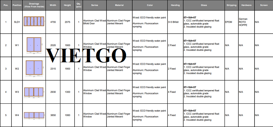 VIETGO xin gửi tới Quý nhà cung cấp thông tin về đơn hàng cửa sổ từ vị khách tiềm năng, ông Granny.