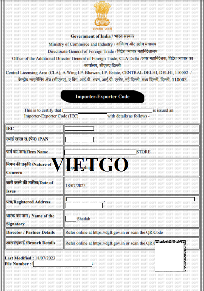 Hình ảnh chứng chỉ xuất nhập khẩu của công ty vị khách hàng