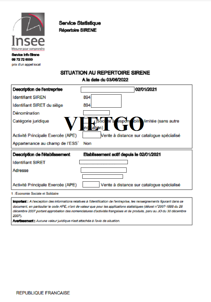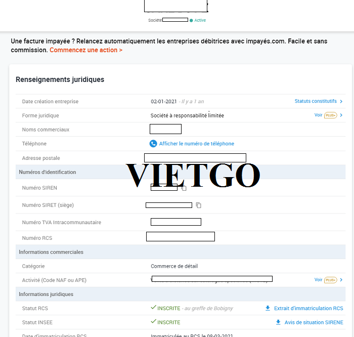 Thông tin đăng ký kinh doanh của vị khách hàng