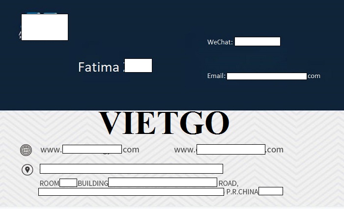 Bà Fatima mong muốn sớm nhận được báo giá từ các nhà cung cấp của VIETGO. Bởi vậy, Quý nhà cung cấp nào mong muốn hợp tác cùng vị khách hàng xin vui lòng liên hệ và báo giá cho ông trong thời gian sớm nhất theo thông tin dưới đây: