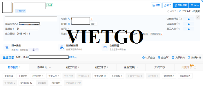 Hình ảnh thông tin công ty của vị khách hàng