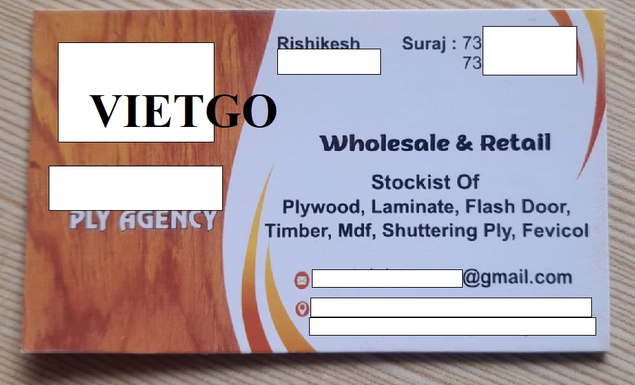 VIETGO xin gửi tới Quý nhà cung cấp thông tin về đơn hàng gỗ dán thương mại từ vị khách tiềm năng, ông Rishikesh.