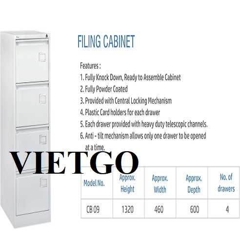 Vừa qua, ông Suresh – đại diện công ty ██████████ Private Limited đã chủ động liên hệ với VIETGO nhằm mục đích nhập khẩu sản phẩm tủ sắt văn phòng để phục vụ cho hoạt động kinh doanh của công ty mình.