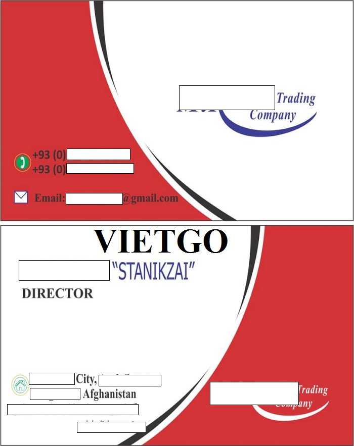 Ông Stanikzai mong muốn sớm nhận được báo giá từ các nhà cung cấp của VIETGO. Bởi vậy, Quý nhà cung cấp nào mong muốn hợp tác với vị khách hàng vui lòng liên hệ và báo giá cho vị khách hàng trong thời gian sớm nhất theo thông tin dưới đây: