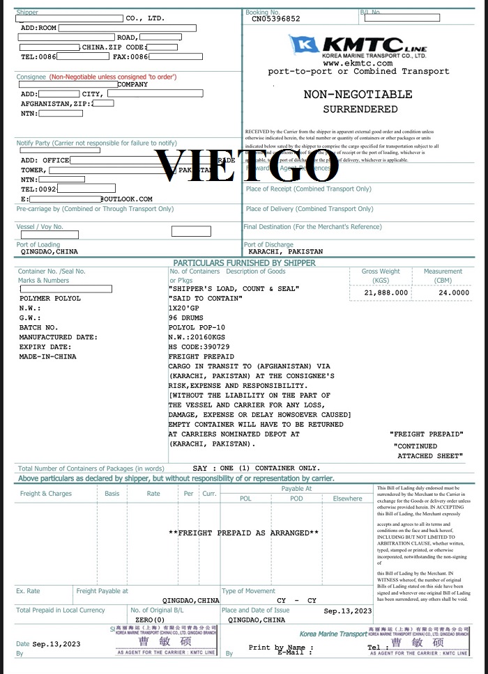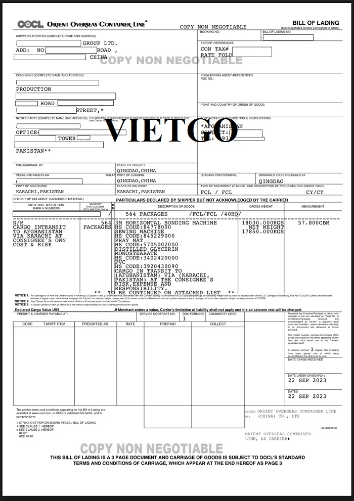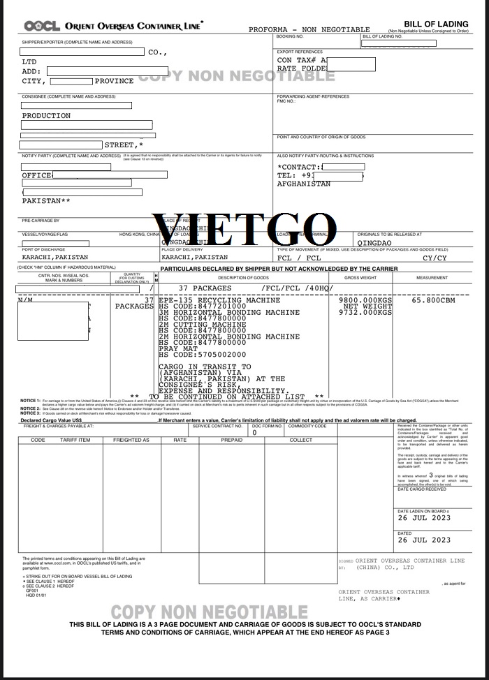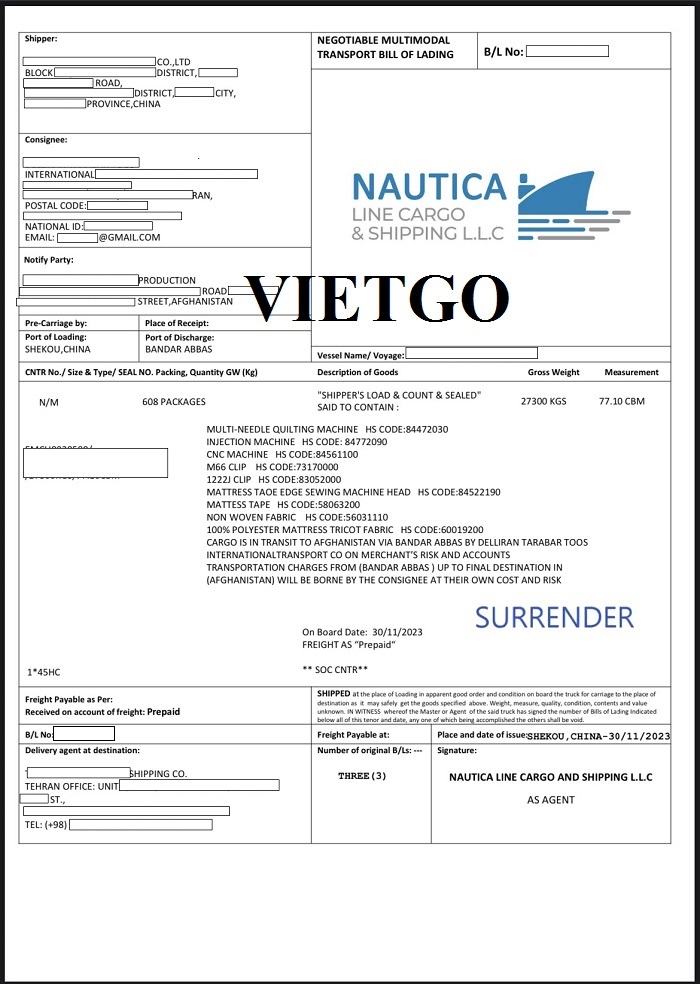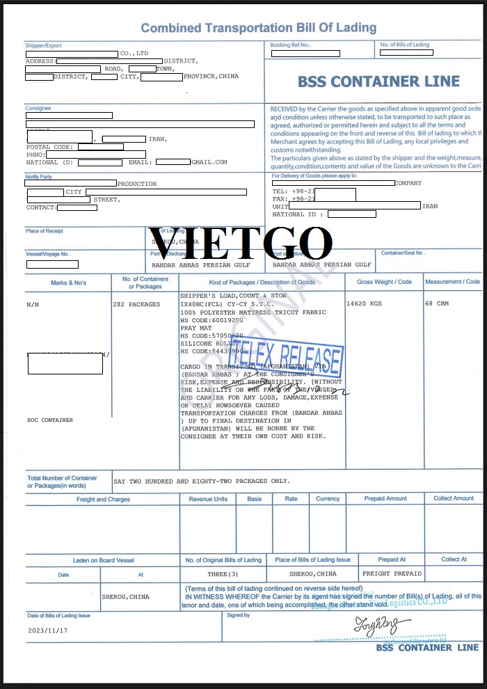 Hình ảnh B/L nhập khẩu hàng hóa của vị khách hàng ngày 26/07/2023, 13/09/2023, 27/09/2023, 17/11/2023 và 30/11/2023