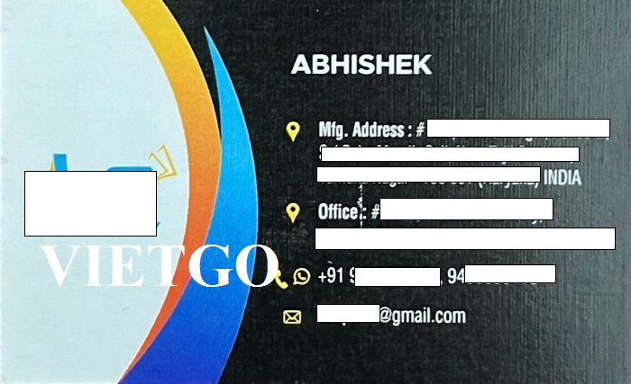 Quý nhà cung cấp nếu có thể đáp ứng các yêu cầu từ ông Abhishek xin vui lòng liên hệ và gửi sản phẩm mẫu cũng như báo giá trong thời gian sớm nhất qua địa chỉ liên hệ mà chúng tôi cung cấp sau đây: