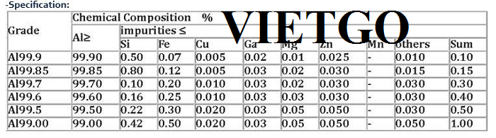 Sau đó, vị khách hàng sẽ nhập khẩu 100,000 tấn nhôm thỏi A7 và 20,000 tấn nhôm thỏi A8 hàng năm