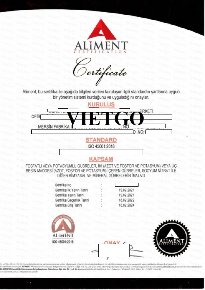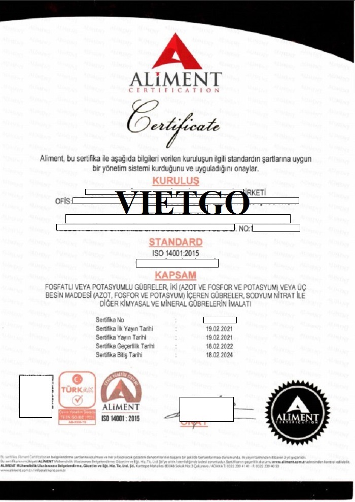 Chia sẻ với VIETGO, ông Enver cho biết thêm: “Công ty chúng tôi xuất khẩu một số lượng lớn sản phẩm và con số này ngày càng tăng lên hàng năm. ██████████ có 2 cơ sở sản xuất tại Khu công nghiệp có tổ chức Mersin và Khu công nghiệp có tổ chức Niğde Bor và có kế hoạch tăng con số này trong những năm tới. Hiện tại, chúng tôi mong muốn VIETGO sẽ giúp chúng tôi kết nối với các nhà cung cấp phân bón urea 46% uy tín với mức giá cạnh tranh. Hy vọng sẽ sớm nhận được báo giá từ các nhà cung cấp của VIETGO để cúng ta có thể bắt tay hợp tác”.