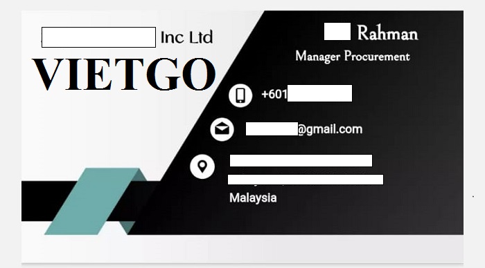 Vừa qua, VIETGO đã có cuộc trò chuyện với ông Rahman, hiện đang nắm giữ chức vụ Quản lý mua hàng của một doanh nghiệp chuyên kinh doanh các sản phẩm năng lượng và dệt may tại Ấn Độ và Malaysia. Công ty của ông có tên ██████████ Inc Ltd, có địa chỉ tại ██████████, Malaysia. ██████████ Inc Ltd hiện đang hoạt động với tư cách là nhà nhập khẩu và phân phối ở cả hai quốc gia Ấn Độ và Malaysia. Các mặt hàng công ty hiện đang kinh doanh gồm có sản phẩm năng lượng như than củi, các sản phẩm dệt may, quần áo dành cho người lớn và trẻ em, đồ truyền thống, túi xách thời trang…