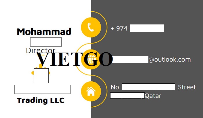 Vừa qua, ông Mohammad ██████████ – hiện đang là quản lý trực tiếp của công ty ██████████ Trading LLC đã liên hệ với VIETGO và bày tỏ mong muốn được nhập khẩu cốc giấy sang thị trường Qatar. Ông là người chịu trách nhiệm và quản lý công việc tìm nguồn cung ứng hàng hóa, hậu cần của công ty. Công ty của ông Mohammad hoạt động trong lĩnh vực kinh doanh đồ uống và đồ ăn nhanh.