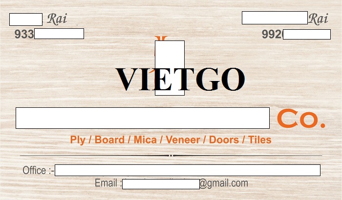 Vừa qua, Vietgo đã có cuộc trò chuyện và trao đổi chi tiết với các vị khách hàng tiềm năng – ông Rai về sản phẩm gỗ dán. Ông Rai hiện đang làm việc cho công ty ██████████ TRADING CO. tại Ấn Độ đang tìm kiếm các nhà cung cấp tiềm năng cho sản phẩm gỗ này.