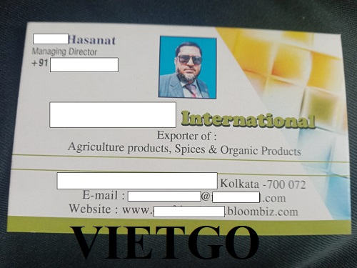 Ông Hasanat, Giám đốc điều hành của công ty ██████████ International đang tìm kiếm nhà cung cấp gừng. Được thành lập vào năm 2005, ██████████ International là công ty xuất nhập khẩu đang hoạt động tại Kolkata, Ấn Độ.