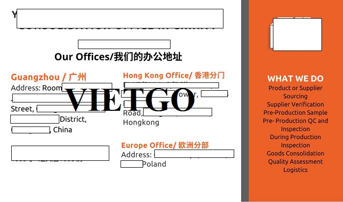 Trao đổi với VIETGO, vị khách hàng chia sẻ: “Mục tiêu của chúng tôi là mang lại giá trị thông qua các giải pháp giao dịch, kiểm toán nhà máy, kiểm soát chất lượng và dịch vụ mua sắm tốt nhất với tổng chi phí mua lại thấp nhất. Với sự giúp đỡ của chúng tôi, các công ty sẽ vượt qua những thách thức và rủi ro trong quá trình nghiên cứu thị trường cũng như giao dịch hàng hóa và dịch vụ khi nhập khẩu từ Trung Quốc. Danh mục sản phẩm mà chúng tôi kinh doanh rất đa dạng, được bán cho mục đích tiêu dùng, kinh doanh hoặc chính phủ”.