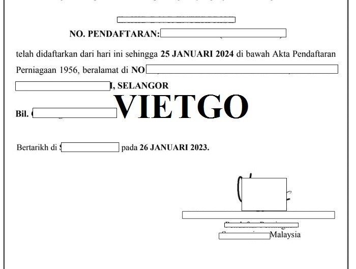 Thông tin đăng ký kinh doanh của vị khách hàng