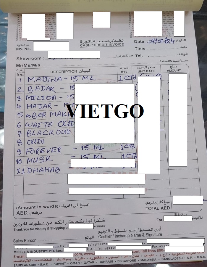 Hóa đơn nhập khẩu hàng hóa của vị khách hàng từ thị trường Dubai
