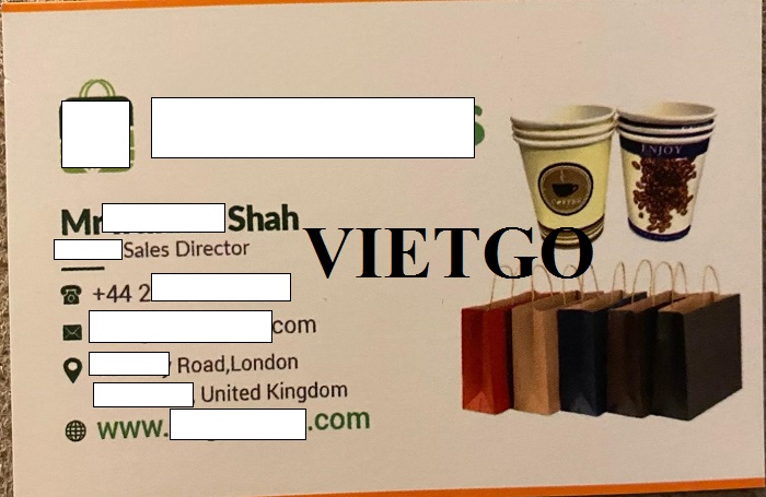 Vừa qua, ông Shah – giám đốc công ty ██████████ đã chủ động liên hệ với VIETGO nhằm mục đích nhập khẩu sản phẩm hộp pizza và hộp burger để phục vụ cho hoạt động kinh doanh của công ty mình.